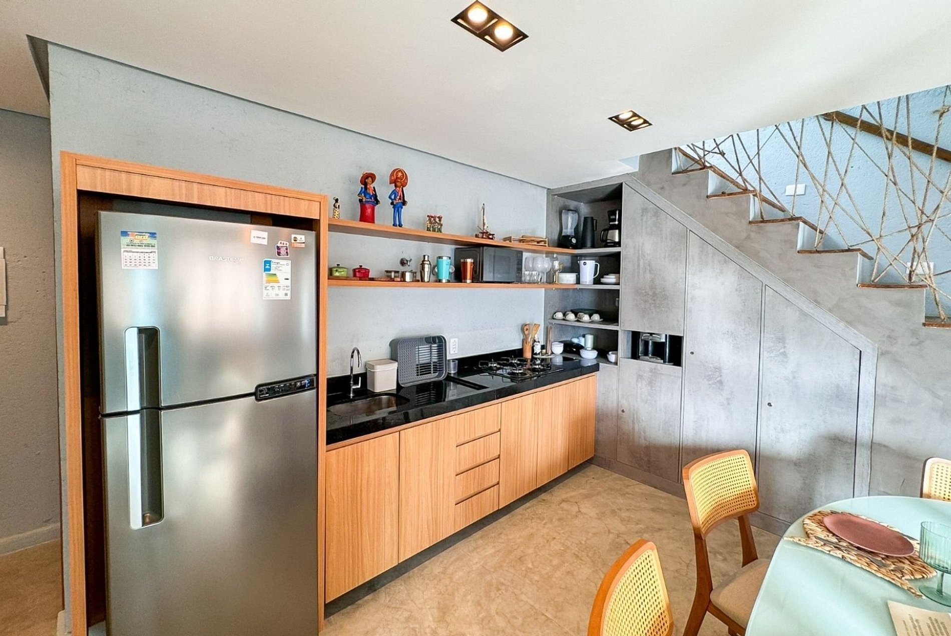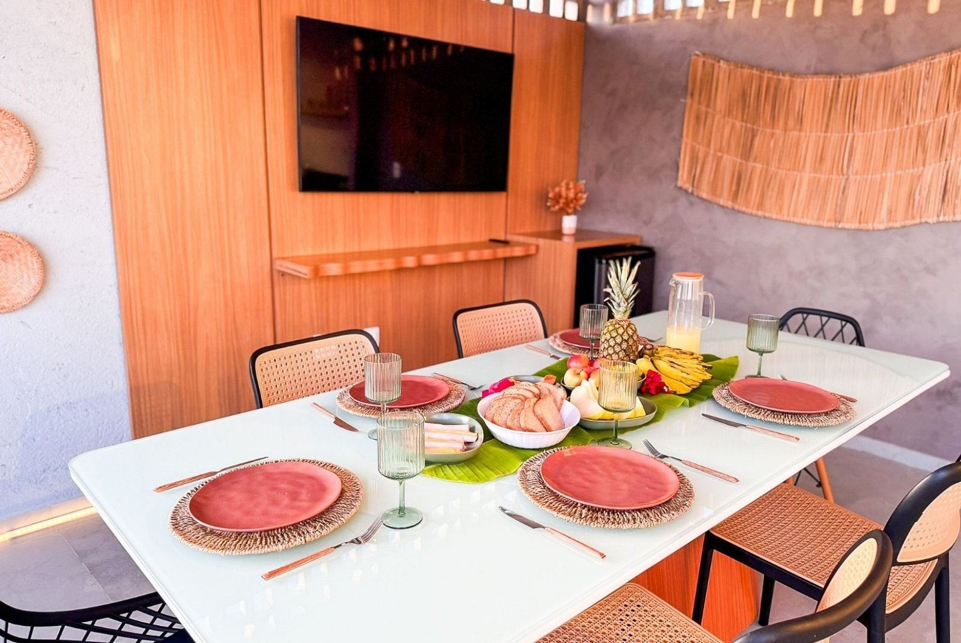 Alojamiento 3 habitaciones, incluyendo 1 suite, todas con aire acondicionado: Suite: cama queen, TV de 42" y baño privado Habitación 1: cama doble y TV de 32" Habitación 2: dos camas individuales y TV de 32" 3 baños amplios y bien equipados Áreas interiores Acogedora sala de estar con sofá para 4 personas, TV de 65" y mesa de comedor para 6 personas Cocina totalmente equipada con: Estufa de 4 hornillas Refrigerador Microondas Freidora de aire Cafetera, sandwichera y purificador de agua Todos los utensilios necesarios para preparar sus comidas cómodamente Azotea: El punto fuerte de Casa Lanai 30 Disfrute de lo mejor de la casa en la exclusiva azotea, con: Piscina privada y vista parcial al mar Enfriador de cerveza y parrilla Mesa de comedor para 8 personas TV de 55" Ducha exterior y sofá cama para momentos de relajación y ocio Condominio: Casa totalmente equipada con: Zona de hamacas, aparcamiento para bicicletas, parque infantil, lavandería, puerta de seguridad con videovigilancia. Ubicación: Casa Lanai 30 se encuentra en una de las zonas más exclusivas de la costa de Alagoas, cerca de los principales atractivos de São Miguel dos Milagres y con fácil acceso a la playa y a los mejores restaurantes y bares de la región. Ideal para familias, parejas o grupos de amigos que buscan comodidad, privacidad y una experiencia inolvidable en uno de los destinos más paradisíacos de Brasil.