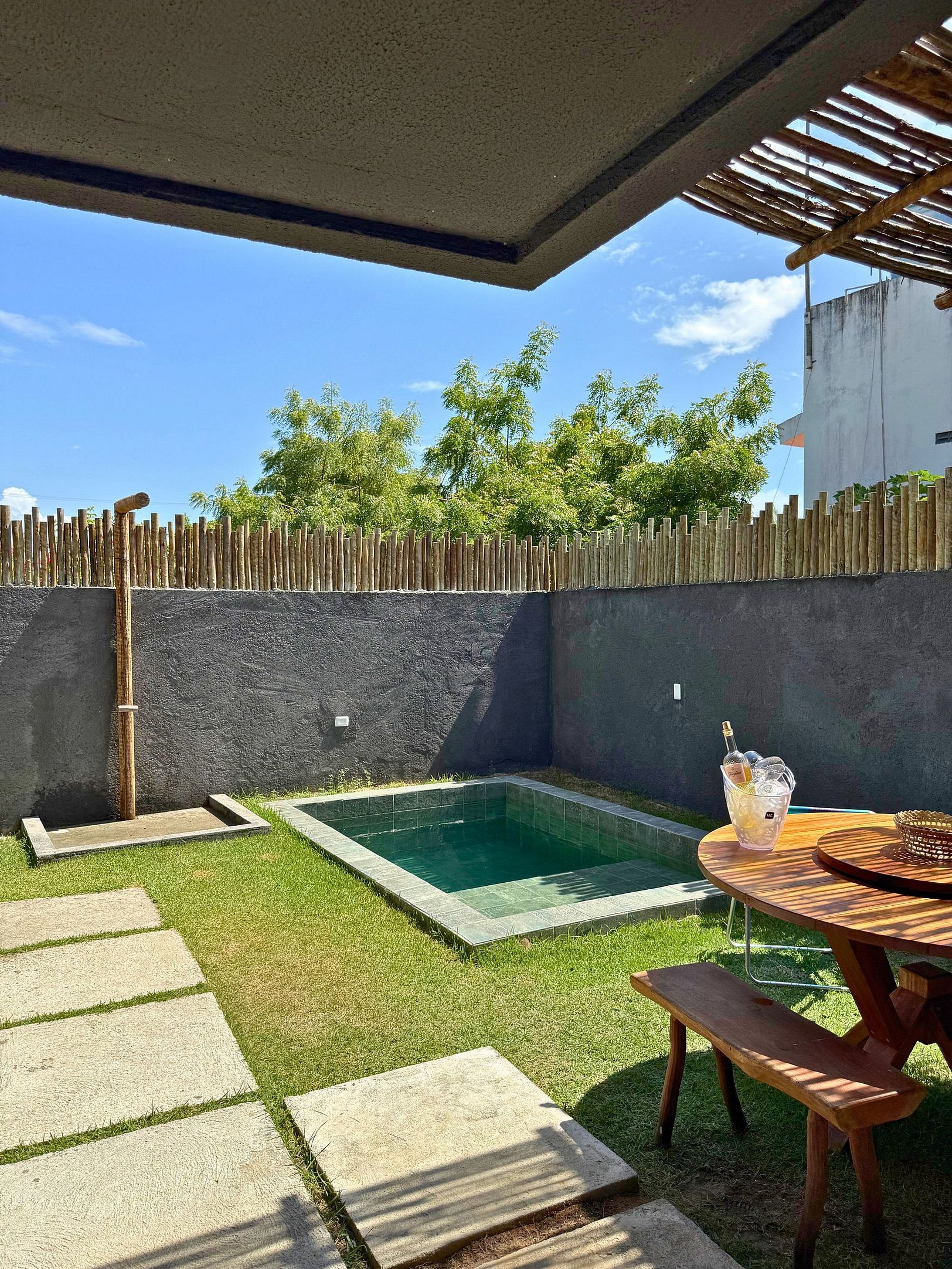Piscine privée et espace détente exclusif avec barbecue, hamac et table à manger extérieure – idéal pour se relaxer et s'amuser.