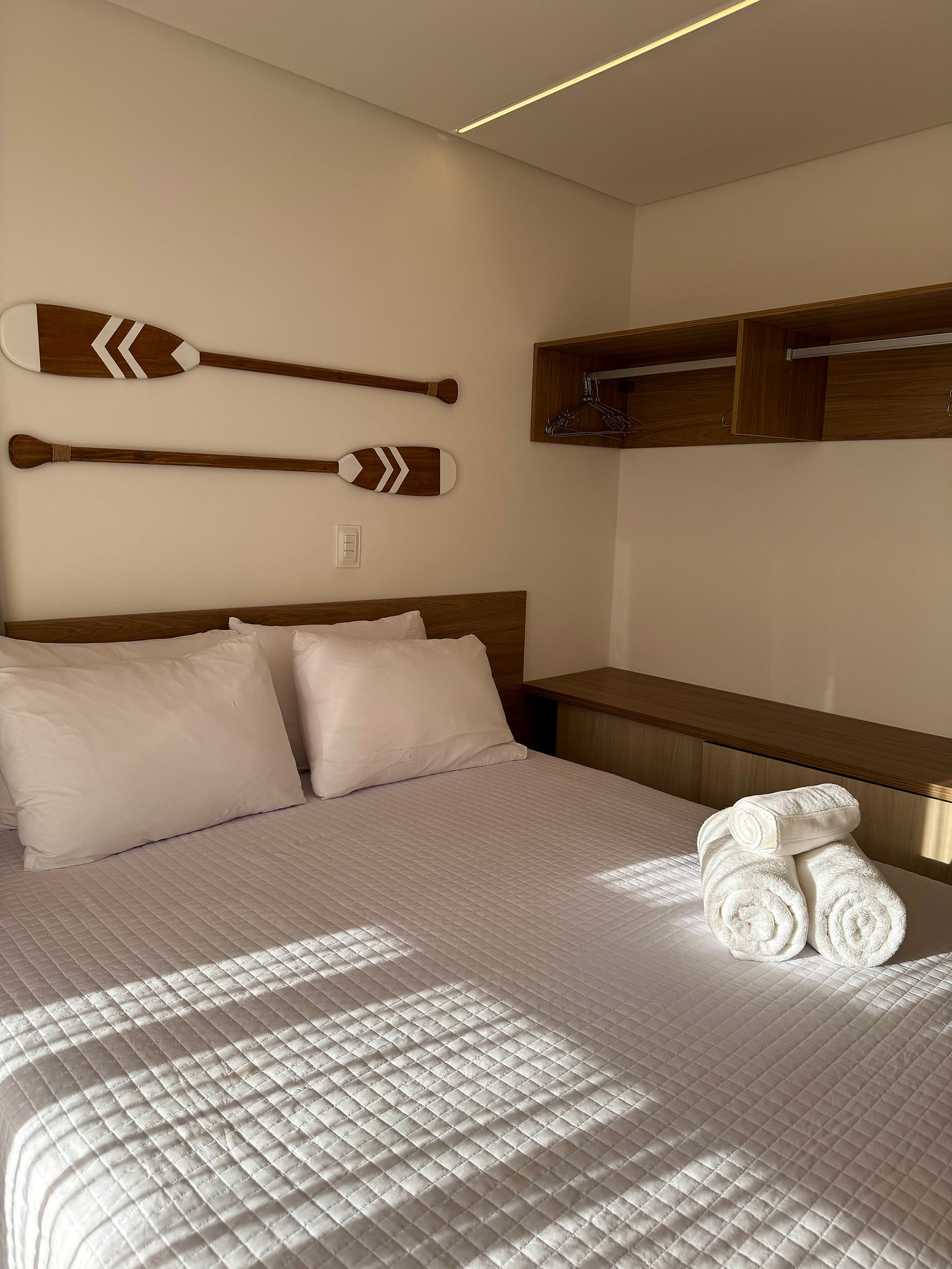 Hébergement : Suite 1 : 1 lit king size Suite 2 : 2 lits superposés simples Suite 3 : 1 lit queen size Nombre total de salles de bain : 4 Lit bébé disponible gratuitement (sur demande) Toutes les chambres sont climatisées, lumineuses et décorées avec goût, reflétant la richesse culturelle du Nord-Est brésilien. Équipements et espaces communs : Cuisine entièrement équipée : réfrigérateur, plaque à induction 4 feux, four électrique, micro-ondes, appareil à sandwichs, mixeur, filtre à eau et cafetière. Deux tables à manger pour 6 personnes chacune. Barbecue et cave à bière. Piscine privée avec hamacs et parasol. Télévision 65 pouces. Espaces spacieux et lumineux, parfaits pour se détendre. Résidence : Conciergerie et sécurité 24h/24. Aire de jeux, court de tennis, terrain de volley-ball et terrain de football. Bar de plage avec restaurant. Cafétéria, supérette et laverie. Salle de sport, salle de jeux. Espace restauration. Magnifiques jardins et accès exclusif à la plage de Marceneiro. L'emplacement est privilégié : à quelques mètres de la Capela dos Milagres et de la Casa Marceneiro, un lieu d'événements et de célébrations qui contribue au charme de la région. Casa Naluum G4 est le refuge idéal pour ceux qui recherchent des moments inoubliables sur la côte nord d'Alagoas, avec confort, sécurité et le meilleur du Nord-Est. hospitalité. Réservez maintenant et vivez une expérience unique à São Miguel dos Milagres !
