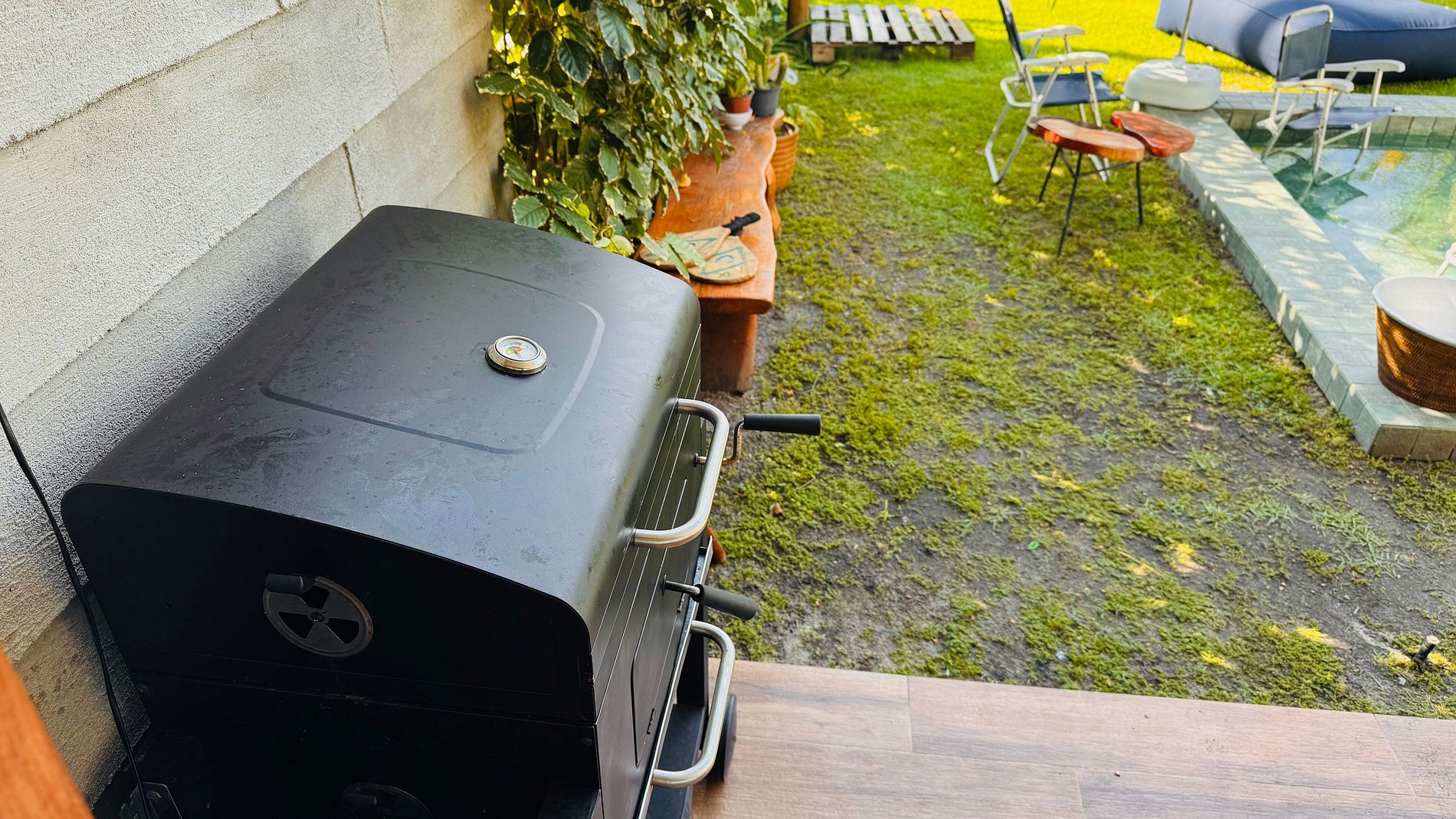 Área de lazer privativa Aproveite momentos inesquecíveis no espaço externo da casa, que conta com: Piscina privativa Churrasqueira Gazebo e redário Ombrelone, cadeiras de praia e cooler