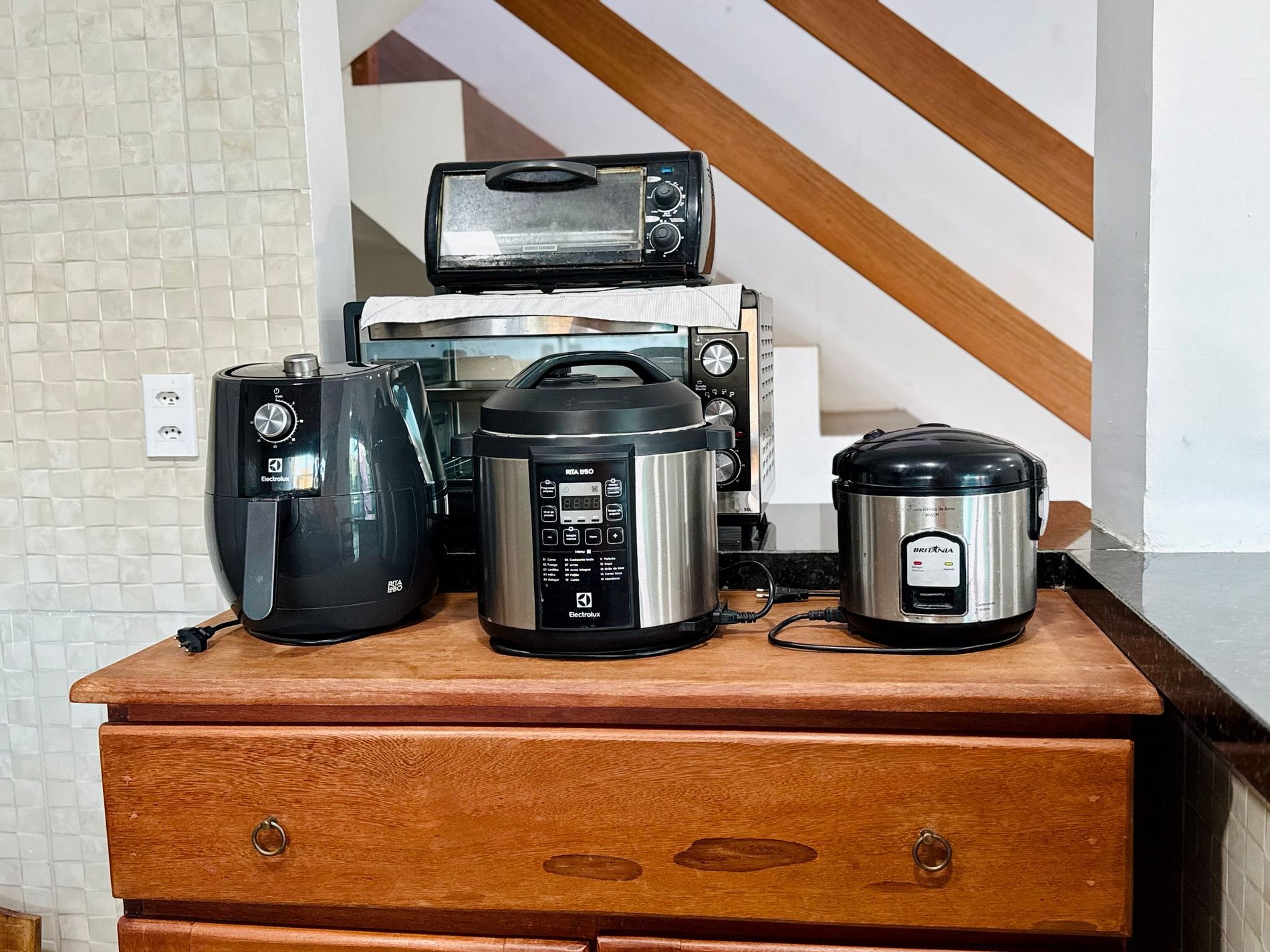 Airfryer, cafeteira, liquidificador e panela elétrica